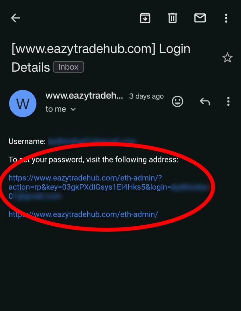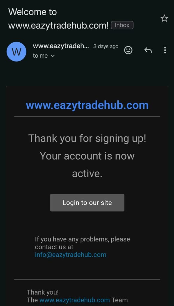 6. When found the mail received from Eazy Trade Hub Inc., then set a strong password by navigating to the link provided in the mail. After resetting your password you will receive a second mail ensuring the completion of sign up process.