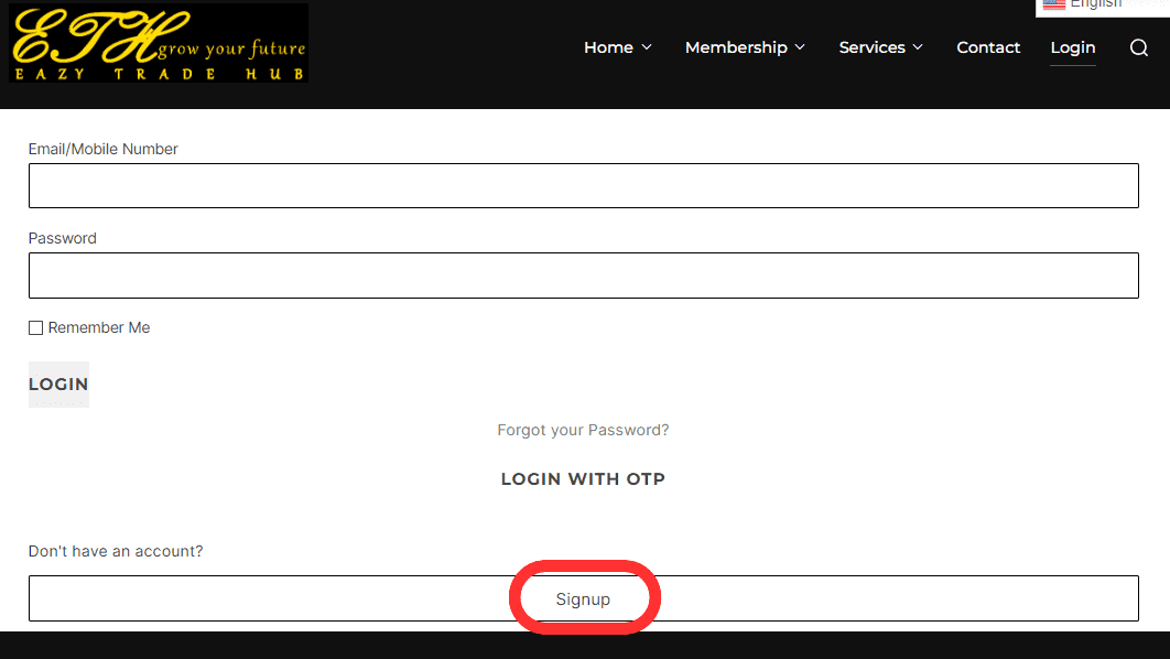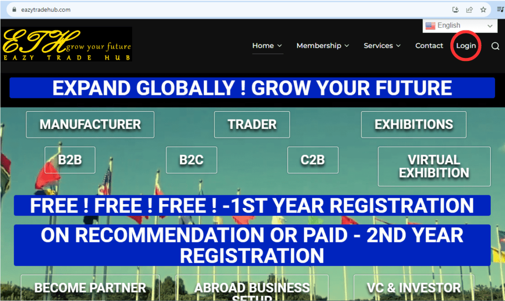 - Navigate to https://www.eazytradehub.com and then click on Login in the menu bar.