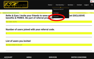 - Login to https://www.eazytradehub.com with existing password and then click on Account in the Membership Drop-down menu.